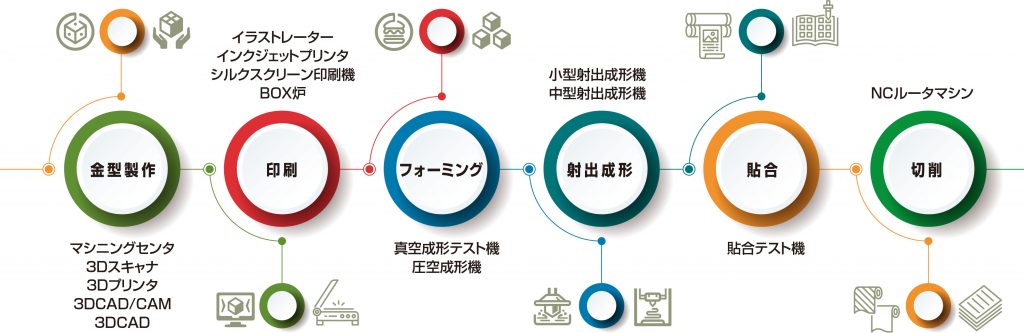 金型の製作、試作モデル・サンプル品の完成、各種テスト・測定・評価、加工方法の検証等、様々な「案件」に、多種多様な「機器」を駆使して対応しています。